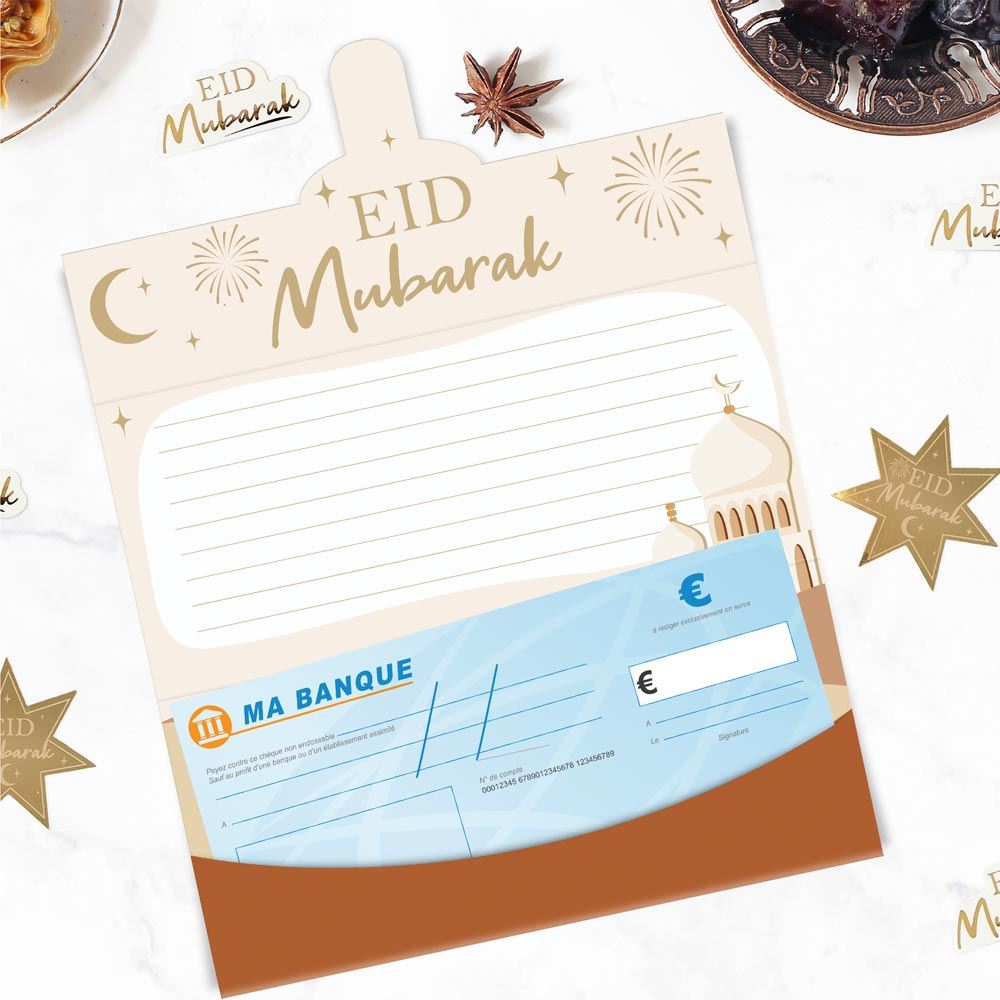 Cette enveloppe porte-billets est idéale pour y glisser un chèque ou de l'argent à la fin du Ramadan pour célébrer l'Eid.