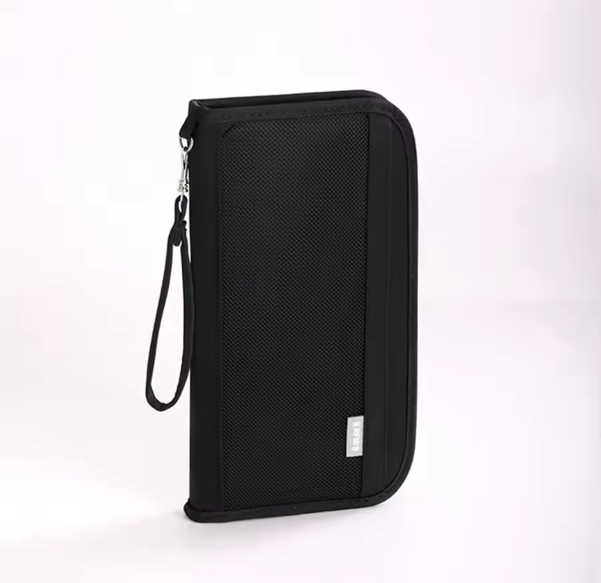 Ce porte-documents de voyage Ă©quipĂ© dâune protection RFID est parfait pour ranger passeports, billets, cartes et devises.