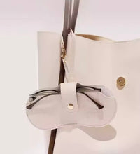 Confectionné en similicuir texturé, cet écrin au design épuré se fixe avec discrétion à votre sac .